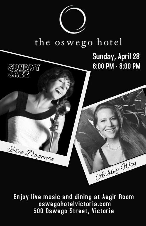Singer Edie Daponte brings passion, playfulness and an evident love of performance to her live shows. Edie is accompanied by the talents of Ashley Wey on piano. Together this dynamic duo create a wonderful atmosphere, engaging and rewarding audiences with the classic numbers they love to hear. With a signature approach that combines jazz, world music and originals, expect a sumptuous selection of re-imagined jazz standards, ballads and originals performed in English, French, Portuguese and Spanish.