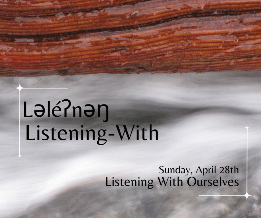 Everyone is welcome to the first gathering of the Listening-With project, a six-week series of workshops, conversations, and outdoor events that give space and time for asking how our personal, ancestral, and professional experiences and realities affect how we listen, and how we sound, specifically within the territories of the lək̓ʷəŋən peoples.