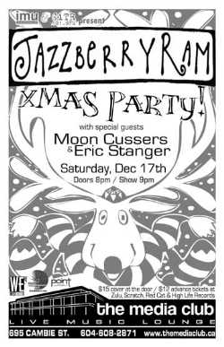 Saturday, Dec 17th IMU & CiTR present JAZZBERRY RAM Xmas Party with guests the Mooncussers & St. Anger @ The MEDIA CLUB, 695 Cambie . Doors 8pm / Cover $15 at the door / Advance tickets $12 at Zulu, Scratch, Red Cat & High Life Records -:- Info: 604 608 2871