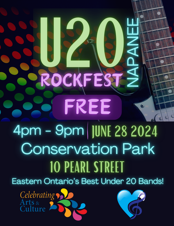 Join the Harmony Lounge & Music Club and the Arts & Culture Advisory Committee of Greater Napanee as we host the first-ever U20 Rockfest. This will be a non-competitive celebration of music featuring some of the best youth bands from Greater Napanee and elsewhere in Eastern Ontario.