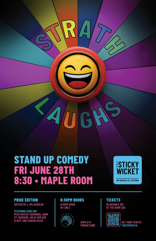 It's our Special PRIDE Edition of "Strath Laughs" - a Live Stand-up Comedy Show @ The Strathcona Hotel's MAPLE ROOM. Hope to see you there.