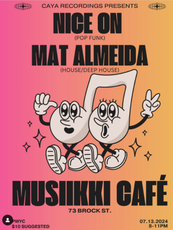 Sat. July 13th 2024 Musiikki Café & Whiskey Bar Kingston Ontario $15