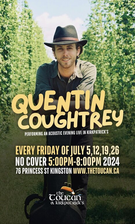 Coughtrey will be performing a solo acoustic set of tunes ranging from folk rock to country blues, sure to get your toes tapping! Besides The Toucan, Quentin has played a handful of venues in Kingston and we are thrilled to welcome him back to the stage for every Friday of July!