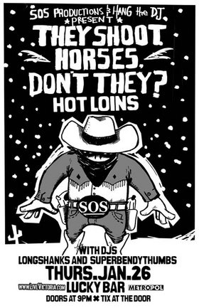 They Shoot Horses, Vansouver's seven piece "noisy old roo-ta-ma-toot" band returns, with Hot Loins and resident Lucky DJs Longshanks and Superbendythumbs (Hang The DJ). Show ends at midnight, but the DJs keep going. Advance tix at Lyle's and Ditch. www.theyshoothorses.org