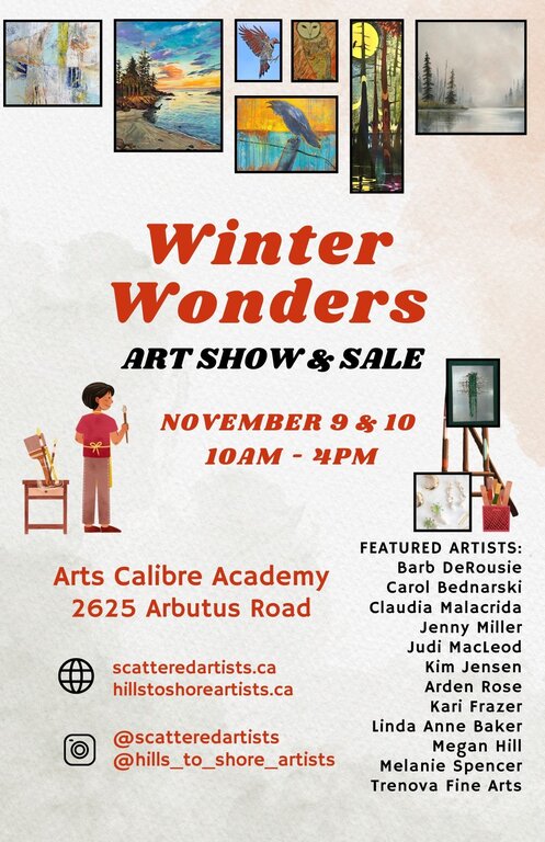 Saanich Artists have come together for the weekend of Nov 9 & 10 for the WINTER WONDERS Art Show & Sale, taking place on Nov 9 & 10, from 11to 4pm.