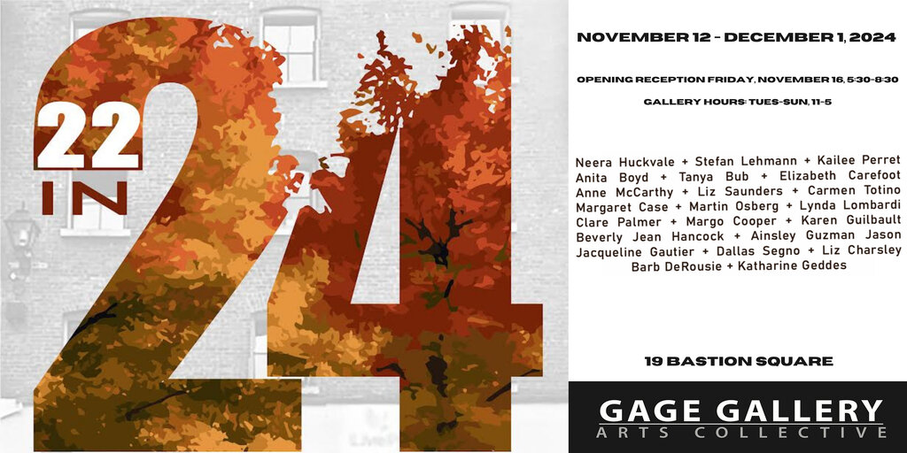 Gage Gallery members are pleased to announce “22 in ’24”, a group art show featuring all 22 Gage members. We will be filling both our Main and Members’ galleries with everything from sculpture, jewelry, textiles to paintings, and more—there’s something for everyone—and just in time for Christmas!
