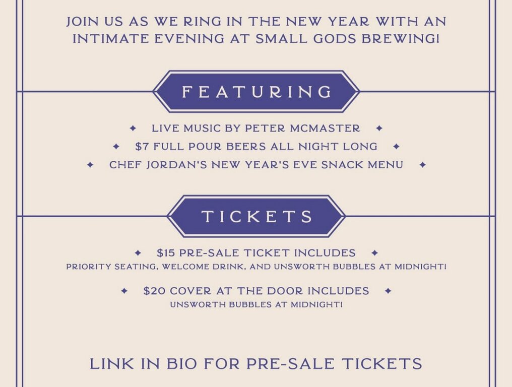 Tue. December 31st 2024 + Add to Calendar Small God's Brewing Co.