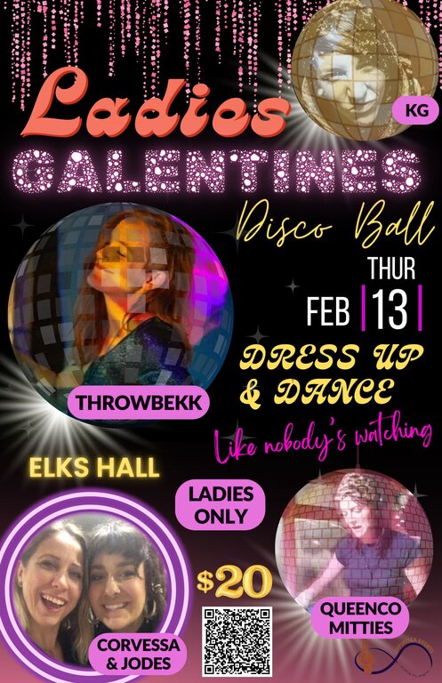 Calling all ladies!! It's the inaugural Ladies Galentines Disco Ball on Thursday Feb 13th at The Elks Hall starting at 9pm.