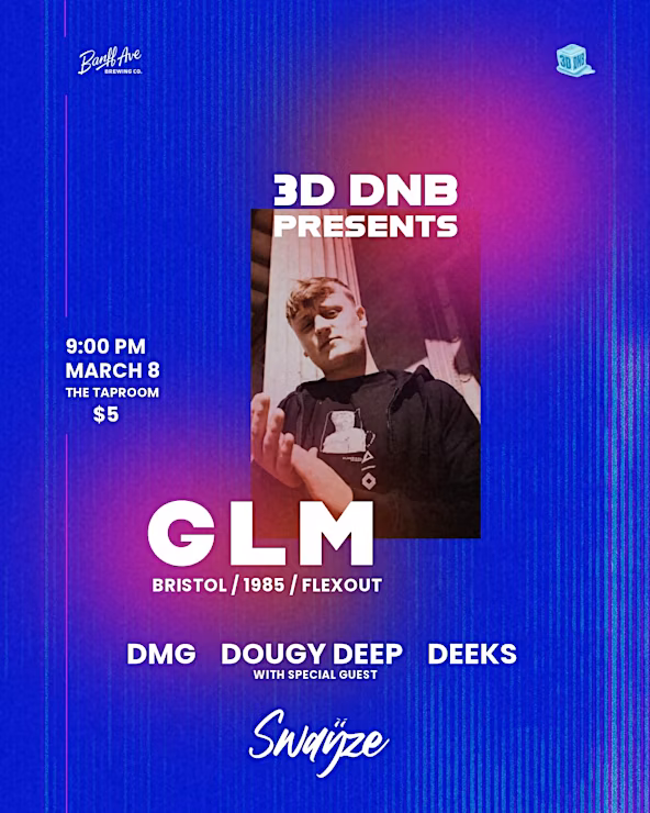 March 8th we are bringing in GLM all the way from Bristol UK, he's going to be bringing that Bristol vibe to the Taproom for a night of basslines! From DNB, Dubstep, UKG and everything in-between this week be a night Banff won't forget!