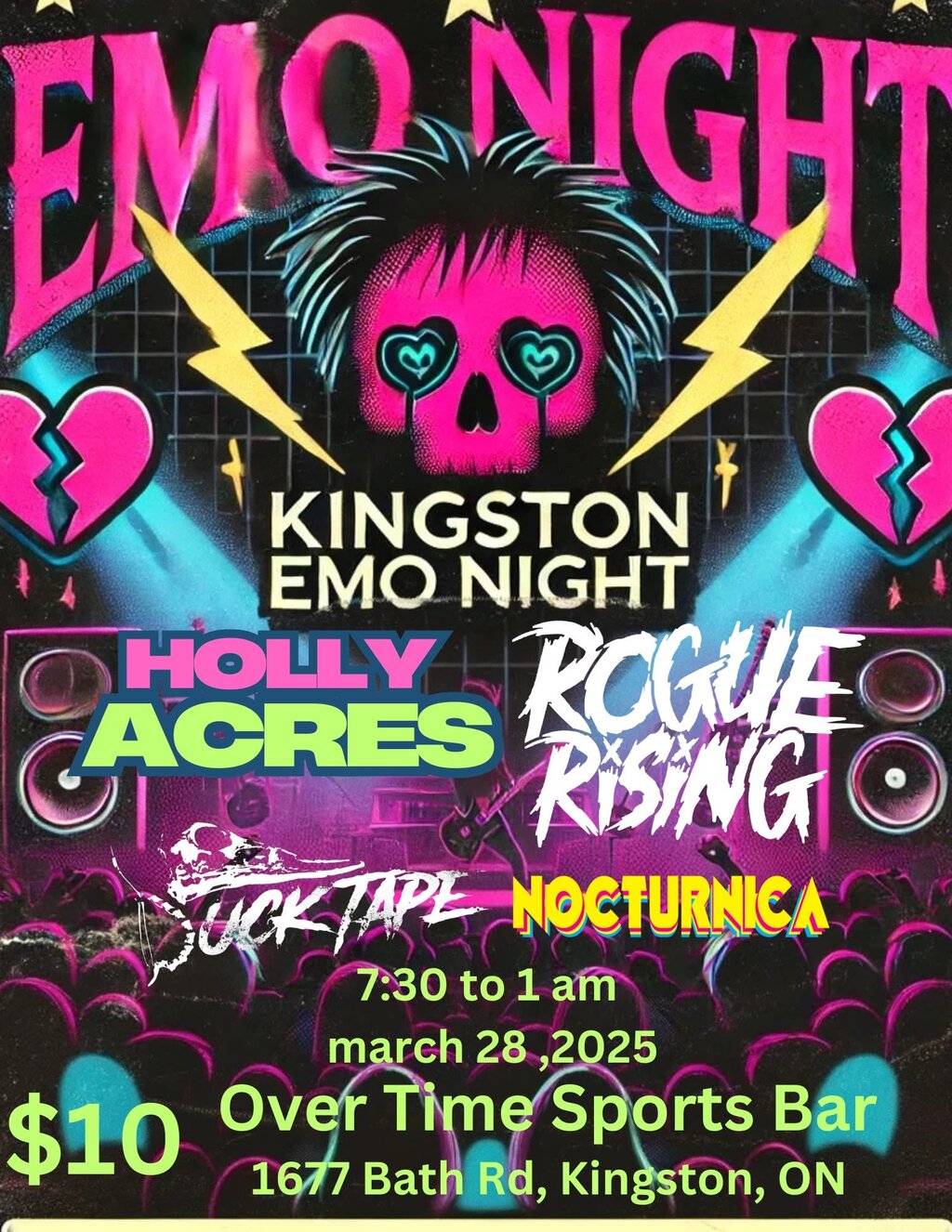 KINGSTON EMO NIGHT 🖤A night of live bands followed by an Emo/Pop Punk DJ Set to close it out!📍 Overtime Sports Bar📅 Friday, March28, 2025⏰7:30 PM – 2:00 AM💲 $10 Cover **Live Bands:**