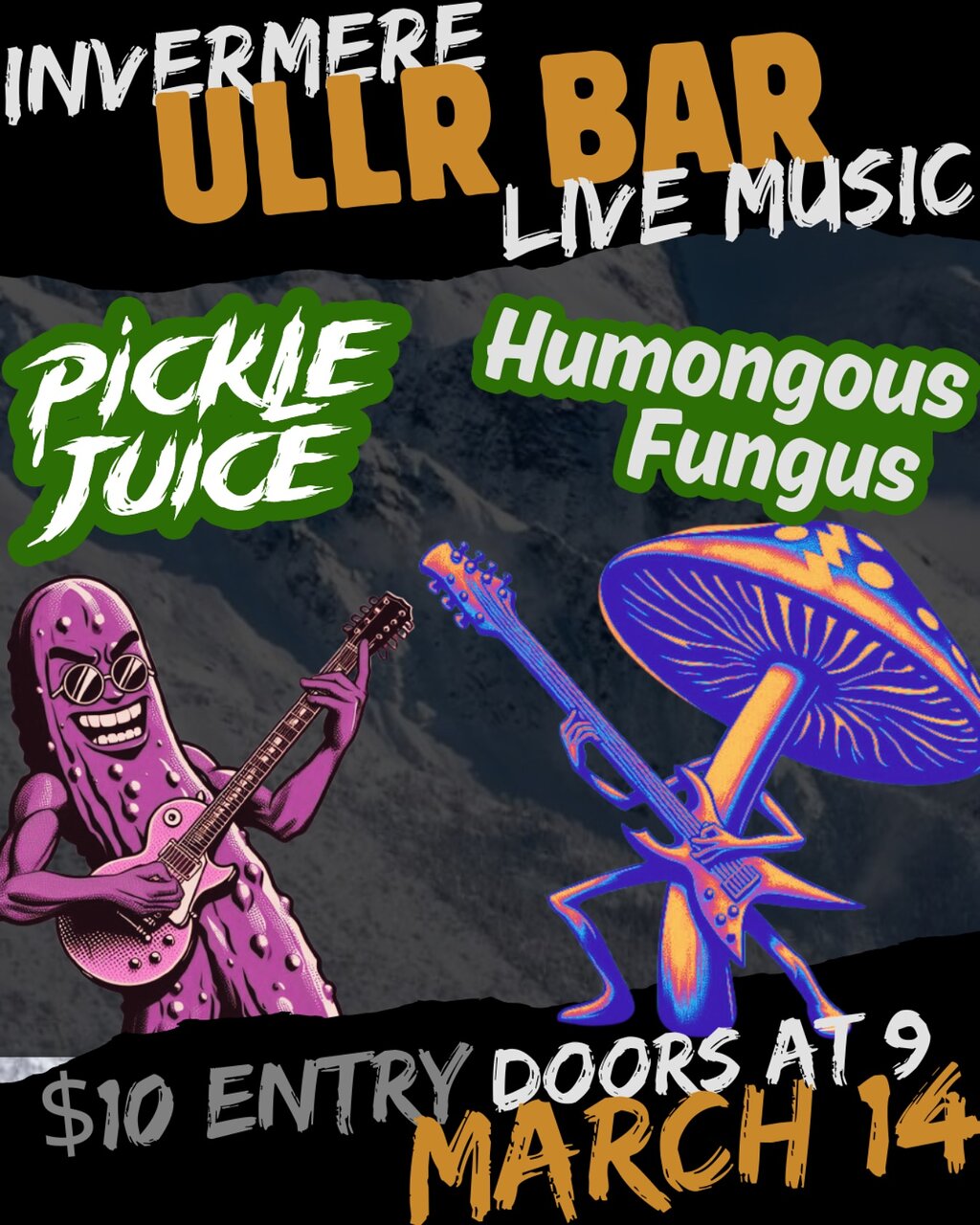 Invermere, we’re coming for you! ALT rock band Pickle Juice are teaming up with Humongous Fungus, and we’re bringing our high energy show straight to your backyard With a live show at The ULLR BAR. Expect high-octane tunes, sweaty mosh pits, and a night of pure, unfiltered music. DOORS AT 9, $10 entry