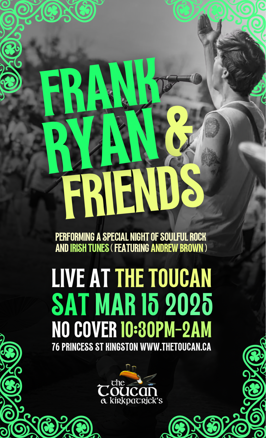 Frank Ryan, a singer songwriter from Dublin, will be taking the stage and playing a range of covers and original songs! His music has been described as “soulful rock” with hauntingly powerful and melodic vocals.
