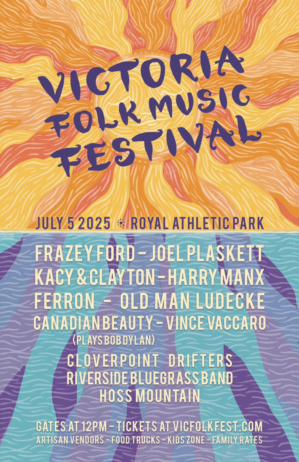 Join us for a joyful weekend of music, community, and celebration at Victoria Folk Music Festival, on July 5th set in the beautiful Royal Athletic Park . Featuring a world-class lineup including Frazey Ford, Joel Plaskett, Harry Manx, Old Man Luedecke, and many more, this family-friendly event brings together the best in folk, roots, and indie music.