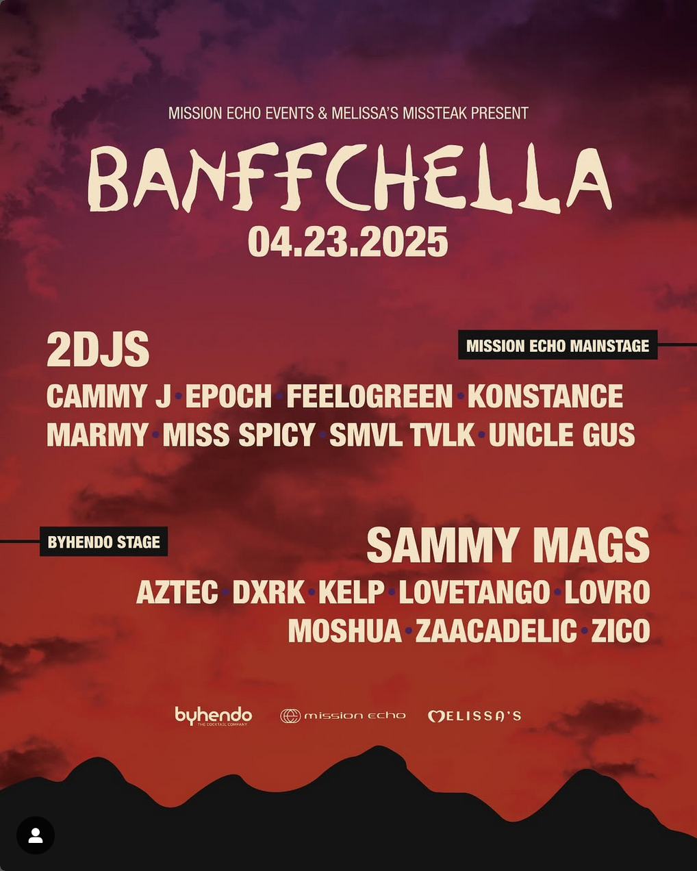 Get ready for the ultimate mountain party! We're bringing festival vibes to the Rockies with 18 DJs, 2 epic stages, and a night of non-stop beats. This high-energy event is a collaboration between Mission Echo Events and Melissa’s MisSteak, powered by BYHENDO.