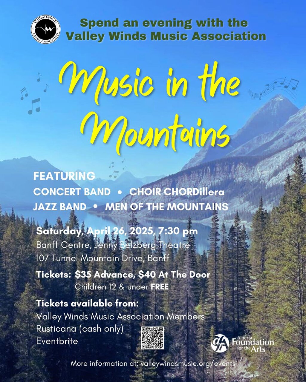 It’s SPRING! Valley Winds are hosting our annual Spring Concert at the Banff Centre on Saturday, April 26, 7:30 pm. Tickets at Rusticana Grocery, Eventbrite, or any Valley Winds member. See you there!!!