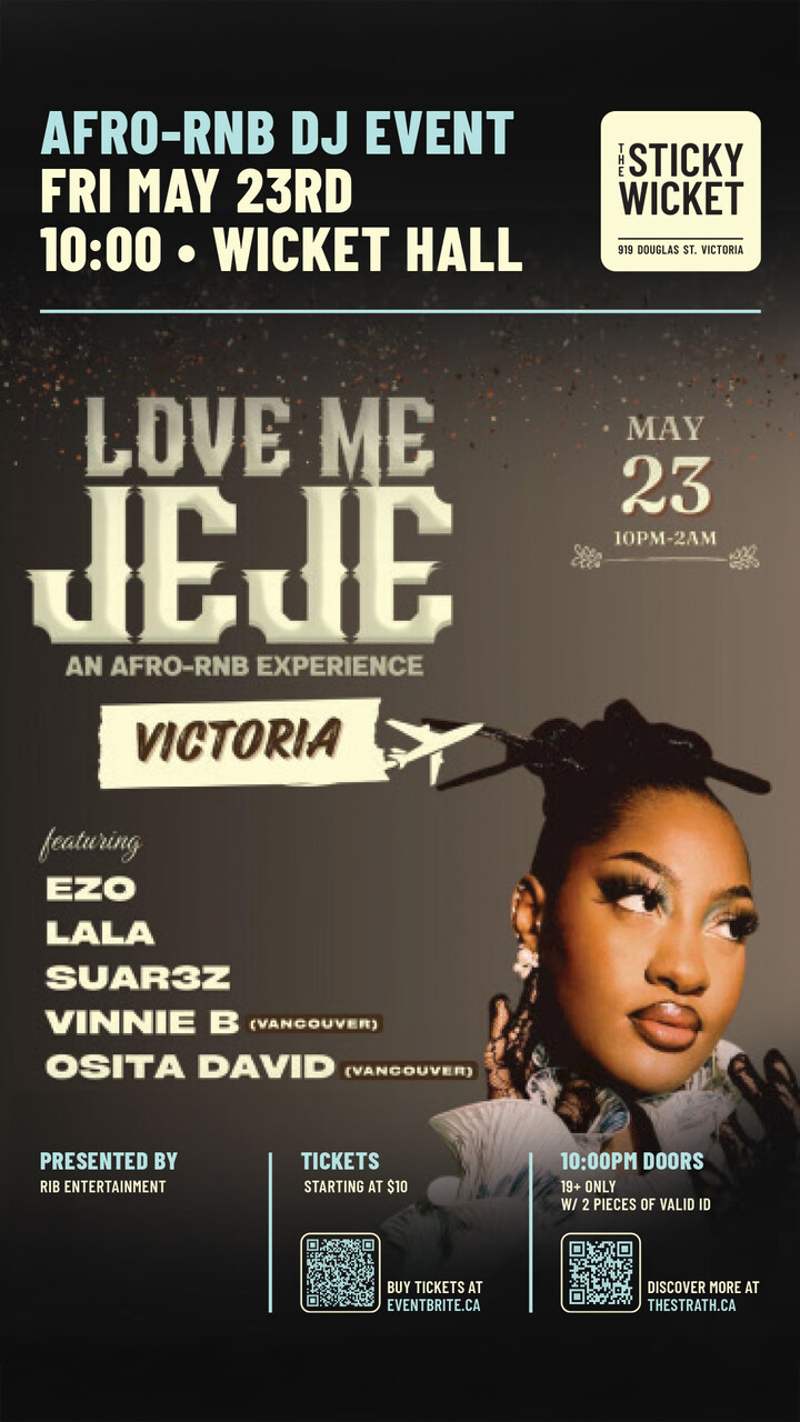 Purchase tickets here: https://www.eventbrite.ca/e/love-me-jeje-an-afro-rnb-experience-victoria-tickets-1323371412519