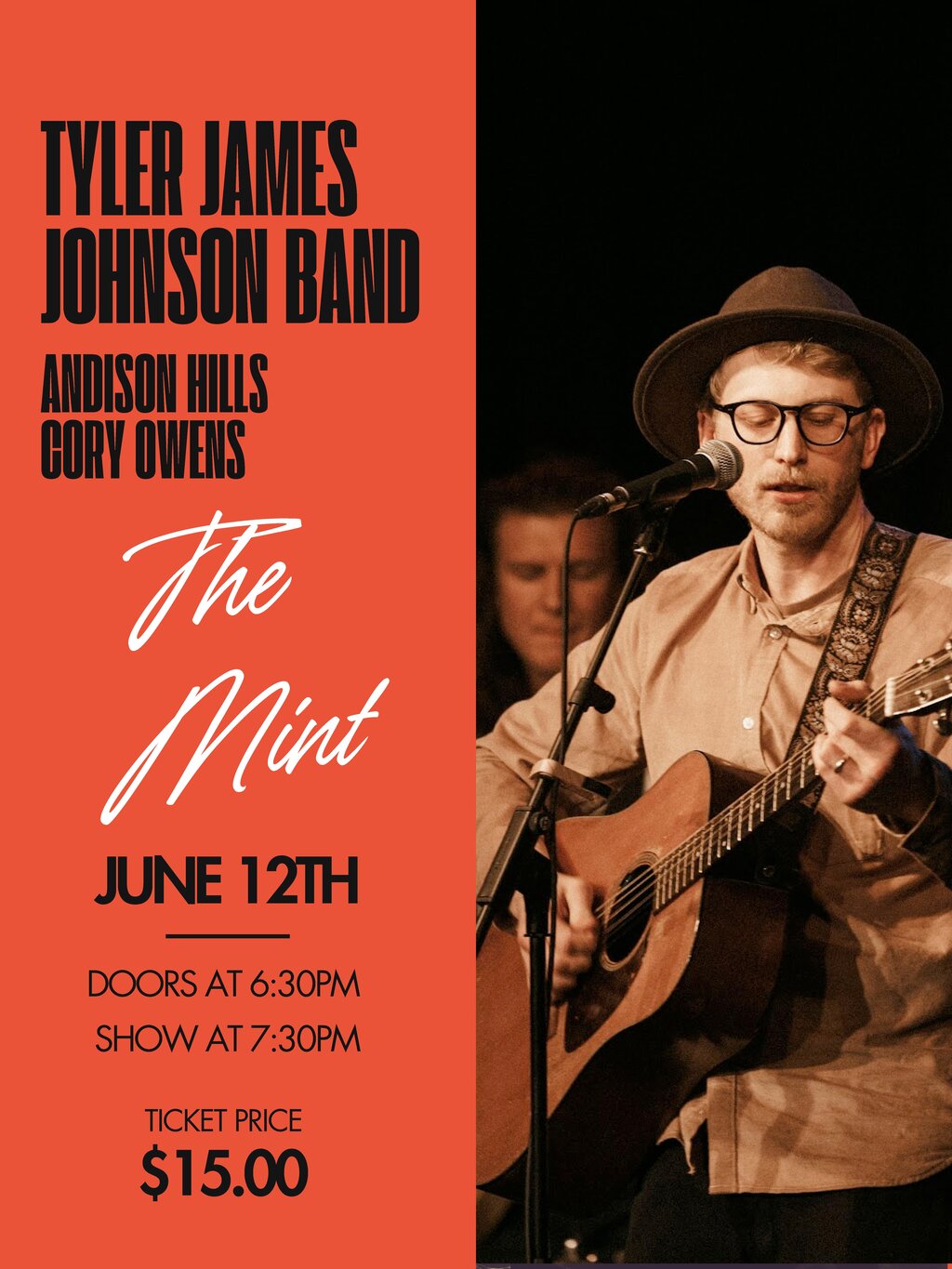 An evening of Folk/Americana at one of Victoria's most intimate live music venues The Mint. Featuring Tyler James Johnson Band, Andison Hills and Cory Owens. Tickets $15 general admission.