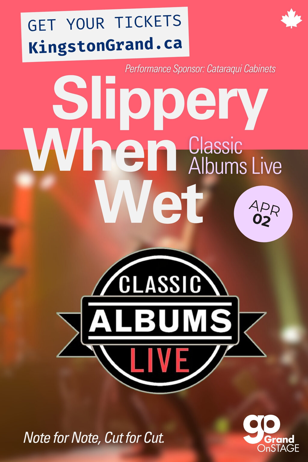 Get ready to rock as Classic Albums Live brings Bon Jovi’s iconic Slippery When Wet album to life—note for note, cut for cut—live on stage! This electrifying performance will transport you back to 1986, as a roster of world-class musicians recreates hits like “Livin’ on a Prayer,” “You Give Love a Bad Name,” and “Wanted Dead or Alive” with astonishing precision and passion. Followed by a greatest hits set.