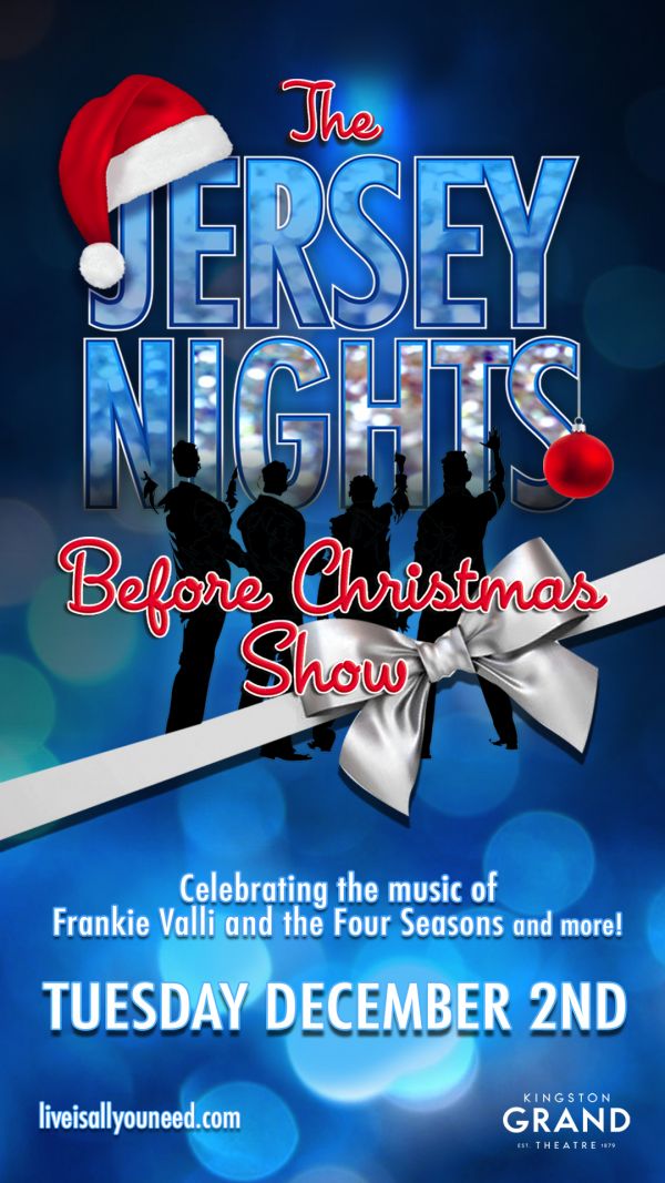 The Jersey Nights Before Christmas Show! Four superb vocalists, a live band, the legendary music of Frankie Valli and The Four Seasons, nostalgic hits by artists of the magic area, a special presentation of Christmas classics, and Santa! This is an evening of fun for the whole family.