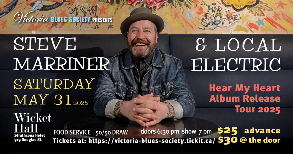 Marriner is following his tours with Colin James and Monkey Junk with a limited number of 2025 CD release shows. VBS is honoured to host one of these shows and we encourage you to get your tickets early.