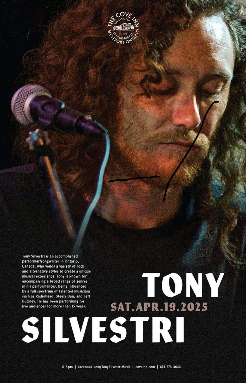 As a singer songwriter Tony has performed his music all over Ontario, opening and sharing the stage with some of the biggest names in the music industry including Jeff Healey, The Glorious Sons, Big Sugar, Widemouth Mason, The Arkells, Gowan, Johnny Winter, Pat Benatar, Kim Mitchell, April Wine, Theory Of A Deadman, Honeymoon Suite, Hollerado, Bedouin Soundclash,and recorded an EP at the Bathouse in Kingston, produced by Rob Baker of the Tragically Hip.