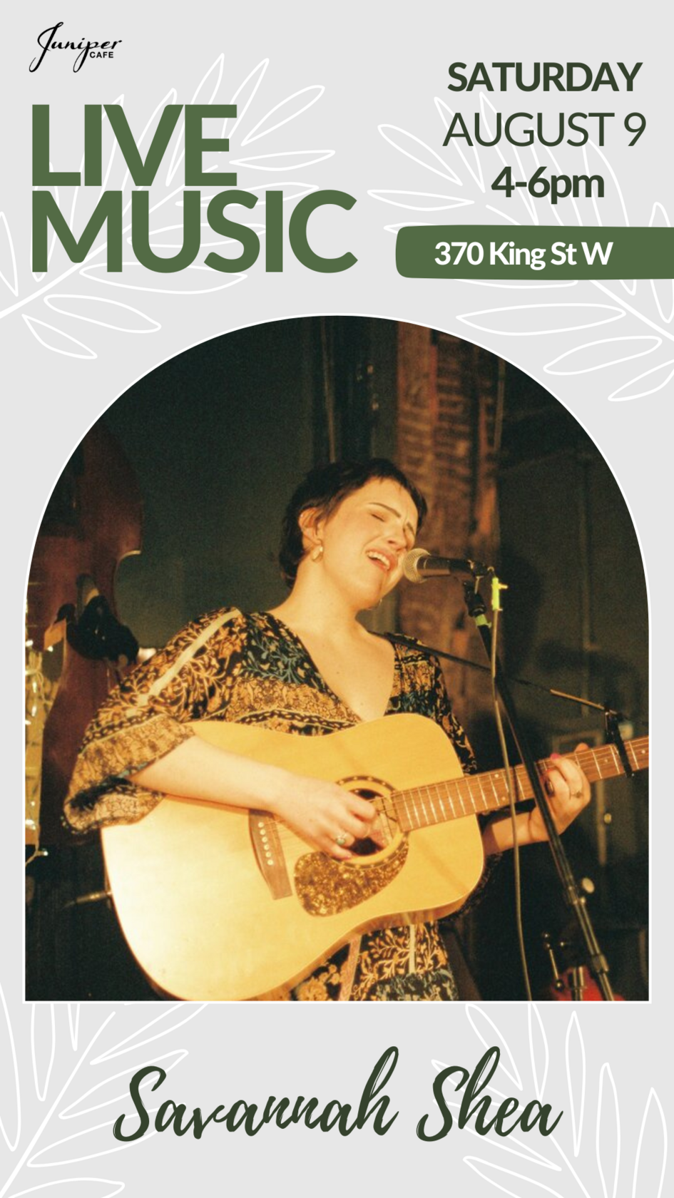 Summer Live Music: Savannah Shea @ Juniper Café Aug 9 2025 - Feb 5th @ Juniper Café
