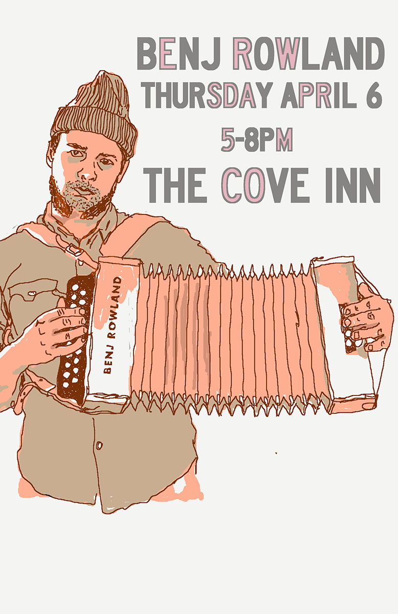 Join us on Thursday, August 7th, 2025 at The Cove Inn from 5-8pm for an indie folk performance by Benj Rowland (of the Mayhemingways).