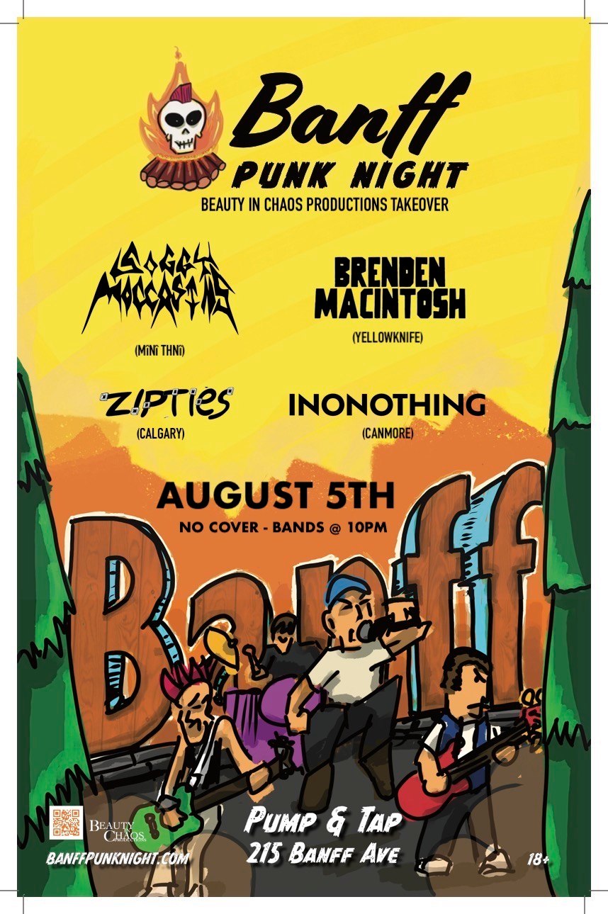 Gerry from Banff Punk Night has let Beauty In Chaos Productions take over his show for next month's date, and we're stoked to announce our lineup for August 5th! We got Soggy Moccasins, Zip Ties, Brenden MacIntosh and INONOTHING taking the stage for this one! Same deal as always, just run by us this time! ♥️ 🎸