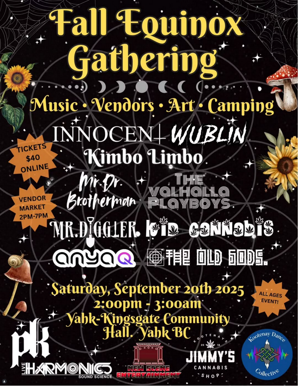 Sat. September 20th 2025 + Add to Calendar Yahk Kingsgate Community Hall (All Ages)