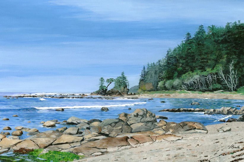 Carol Borrett paints in watercolours and acrylics, and much of her inspiration comes from her travels around Vancouver Island and the Gulf Islands. Her paintings are realistic and reveal her fascination with water, boats, and reflections. Her work captures the varied moods of the coastal area and way of life with a unique perspective. The soft, subtle tones of her work are blended with a distant view to create a scene of hushed introspection.