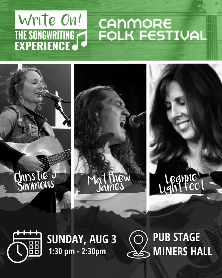 Write On! Showcase at Canmore Folk Festival: Leanne Lightfoot, Christie J Simmons, Matthew James Music @ Canmore Folk Festival - Miners Hall/Pub Stage Aug 3 2025 - Feb 3rd @ Canmore Folk Festival - Miners Hall/Pub Stage
