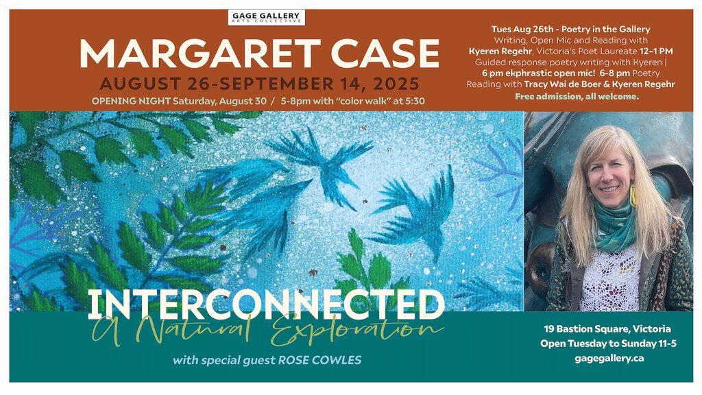 This show is about connections, between living things in nature, between humans and nature and between people. Come to Gage Gallery to explore Interconnected and see leaves, creatures, light and color. Take a look at the way nature communicates, through mycelium, energy and invisible signals, inspiring whimsical and fantastical elements in the paintings. Vibrant colour and playful forms reflect the joy and vibrancy the artists see in the natural world.