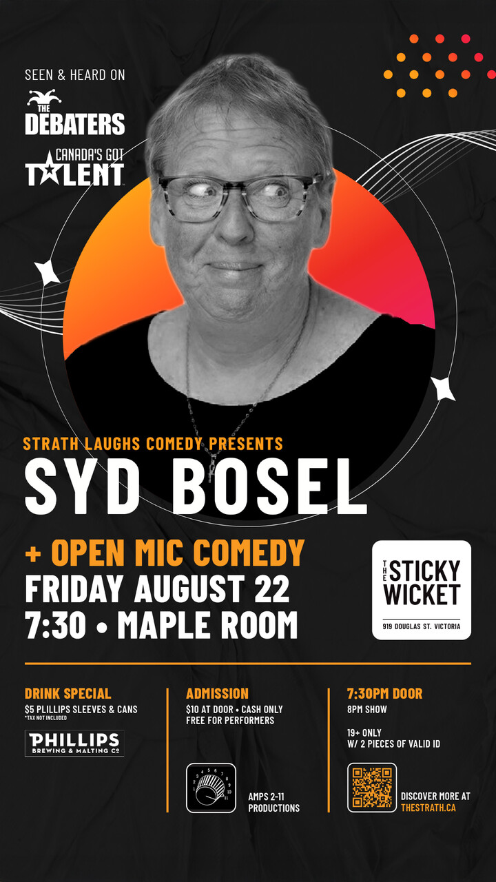 This month our Headliner is SYD BOSEL (as heard on CBC Radio's "The Debaters" , and seen on CTV's "Canada's Got Talent")