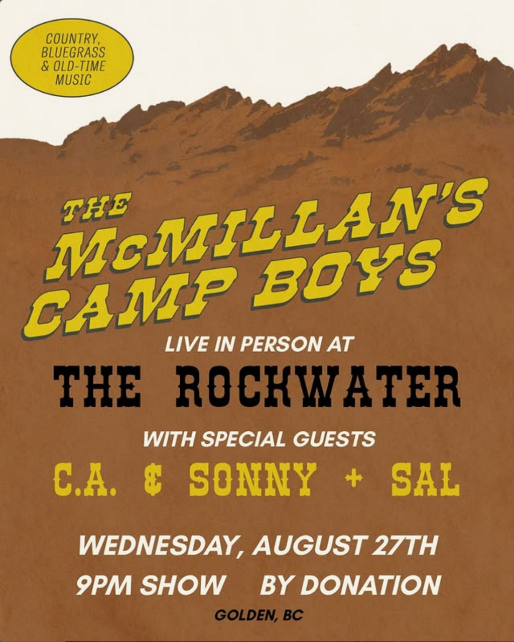 Wed. August 27th 2025 Rockwater Grill & Bar Golden BC Free
