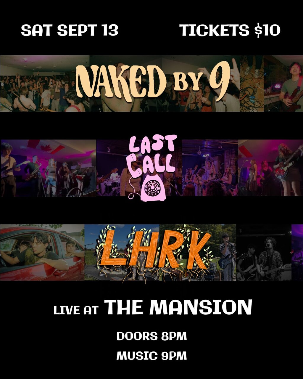Join Naked by 9, Last Call and LHRK at The Mansion on September 13th!