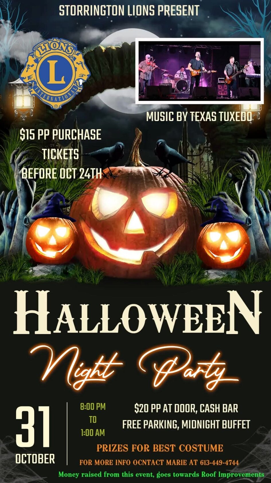Fri. October 31st 2025 Storrington Lions Club Hall Kingston Ontario $15
