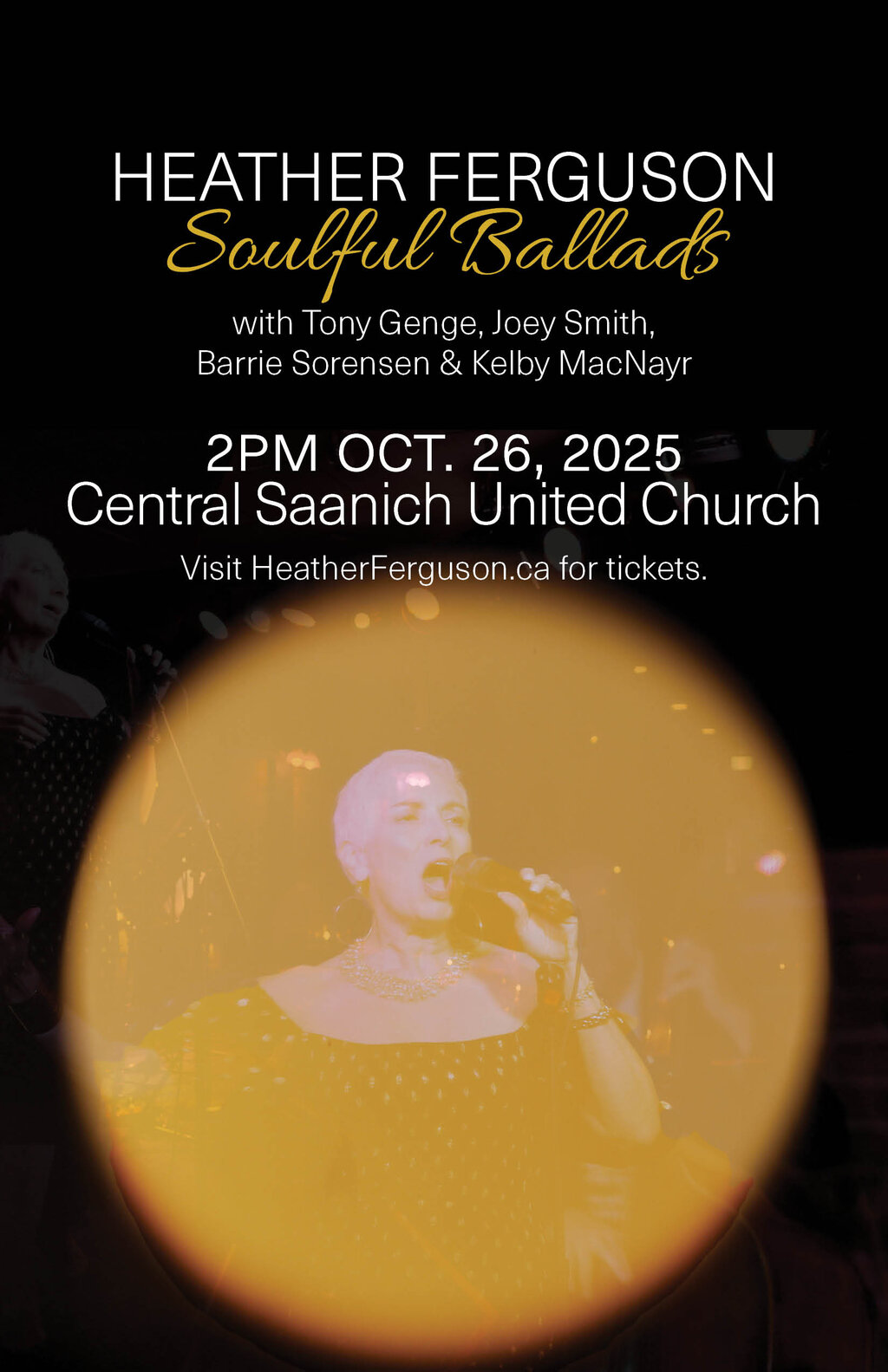 There is nothing as satisfying as a good ballad. Join Heather, Tony Genge, Joey Smith, Kelby MacNayr and Barrie Sorensen at Central Saanich United Church at 2pm, October 26 as we celebrate the great jazz ballads of their time, including Lover Man, Body & Soul, Round Midnight, with a few of Heather's own original songs and upbeat standards thrown in too.