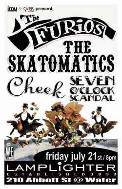 FURIOS, SKATOMATICS, CHEEK & SEVEN O'CLOCK SCANDAL: Los Furios, The Skatomatics, Cheek, SEVEN O'CLOCK SCANDAL @ The Lamplighter Jul 21 2006 - Feb 5th @ The Lamplighter