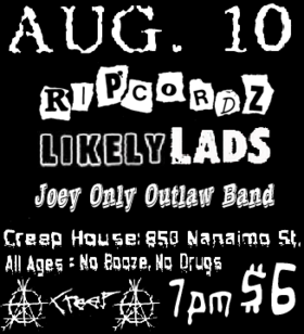 The Ripcordz, The Likely Rads, Joey Only Outlaw Band @ Creephouse Aug 10 2006 - Feb 6th @ Creephouse