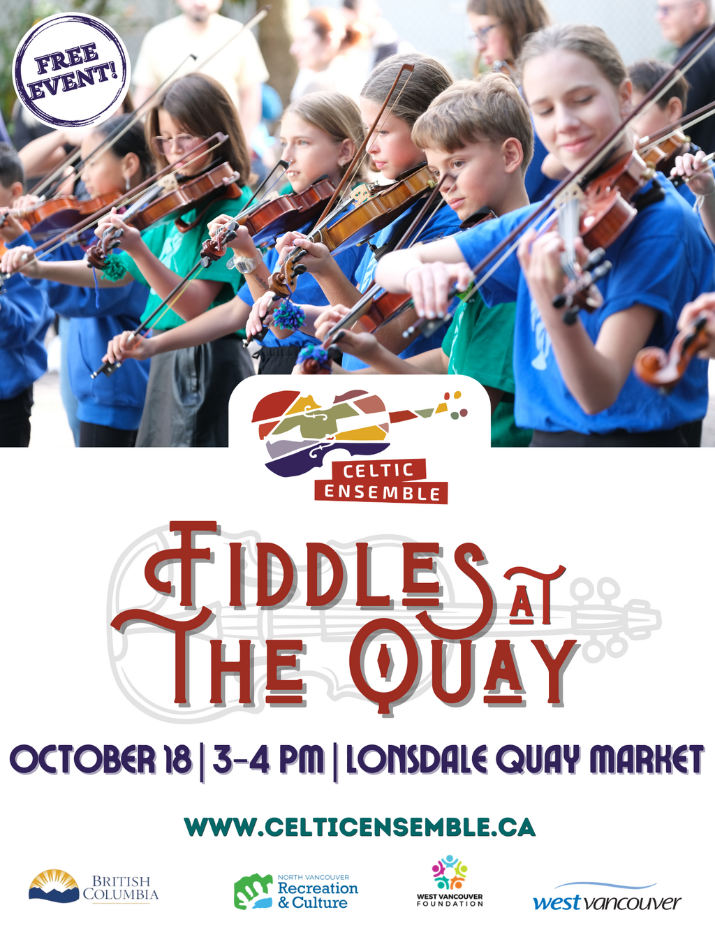 Join The Celtic Ensemble for a FREE afternoon concert at the Lonsdale Quay on October 18th from 3pm-4pm to for an hour that explores new music, genres and instruments from across BC, Canada and the world!