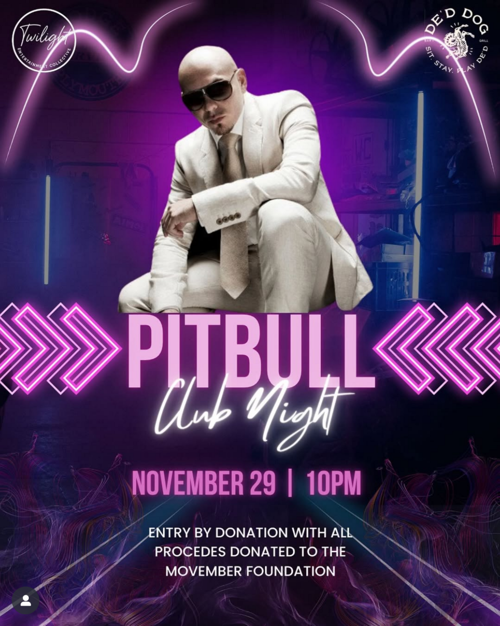 We’re wrapping up Movember with a Pitbull Club Night! Why Pitbull? Why not! 🔥