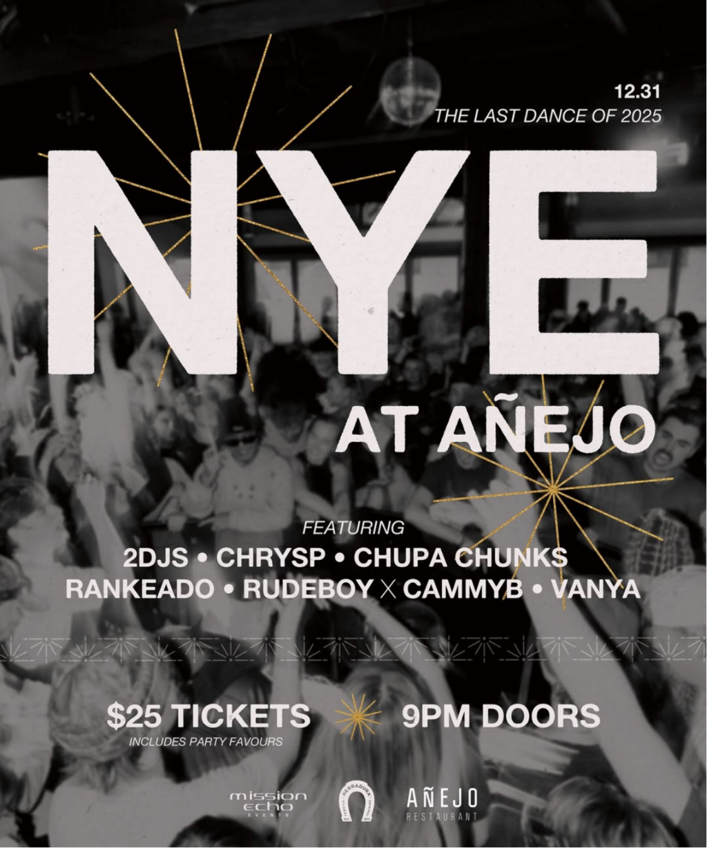 ✨🥂 Have your last dance of 2025 at Añejo Banff! Countdown to midnight with headliner, 2Djs alongside more of your local favourites. Tickets include a glass of champagne for the midnight toast and party favours. Space is limited, so grab your tickets soon at the link in bio!