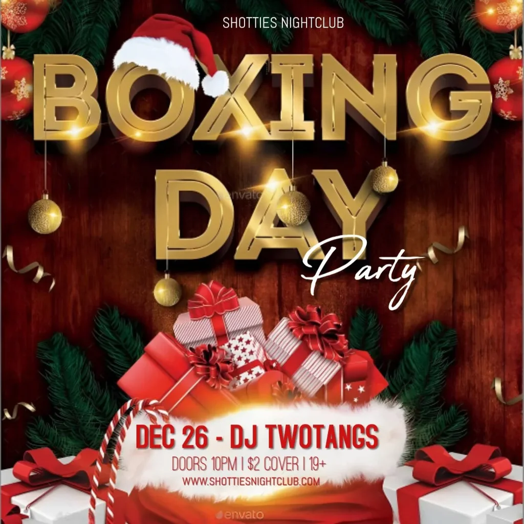 hristmas may be over, but the party isn’t. Shotties Nightclub is keeping the holiday chaos going with our BOXING DAY PARTY, the perfect night to burn off the turkey, unwrap your wild side, and celebrate the season with your crew.