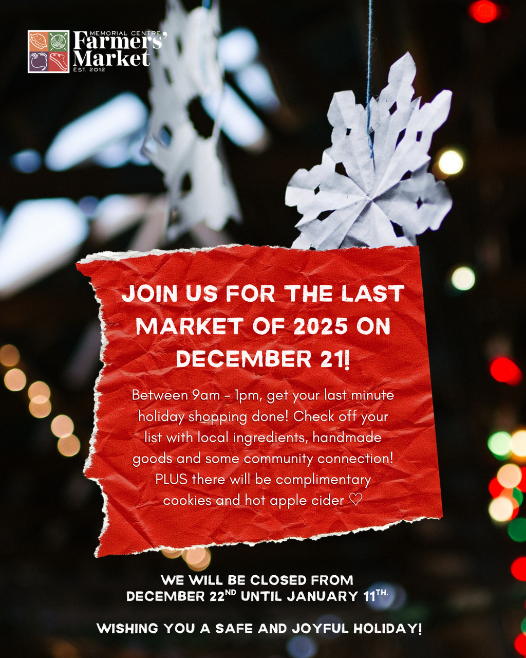 Memorial Centre Farmers' Market: Allison Fleming, Taryn McKenna @ Memorial Centre Dec 21 2025 - Feb 6th @ Memorial Centre
