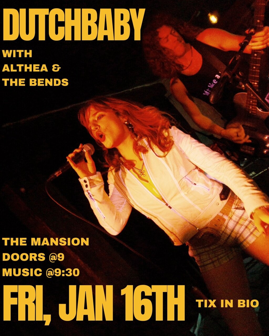 Dutchbaby, Althea and The Bends @ The Mansion Jan 16 2026 - Jan 12th @ The Mansion