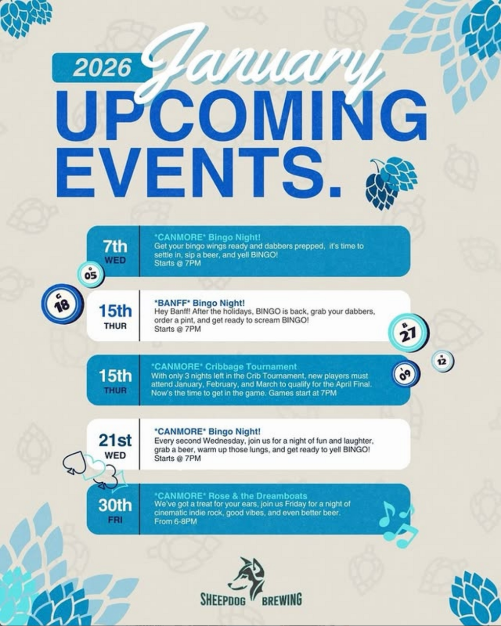 Fri. January 30th 2026 Sheepdog Brewing Canmore Alberta Free