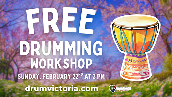 The free drumming workshop is one of the most popular ongoing music events in Victoria.