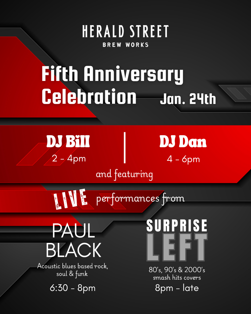 Herald Street Brew Works 5th Anniversary - Feb 5th @ Herald Street Brew Works