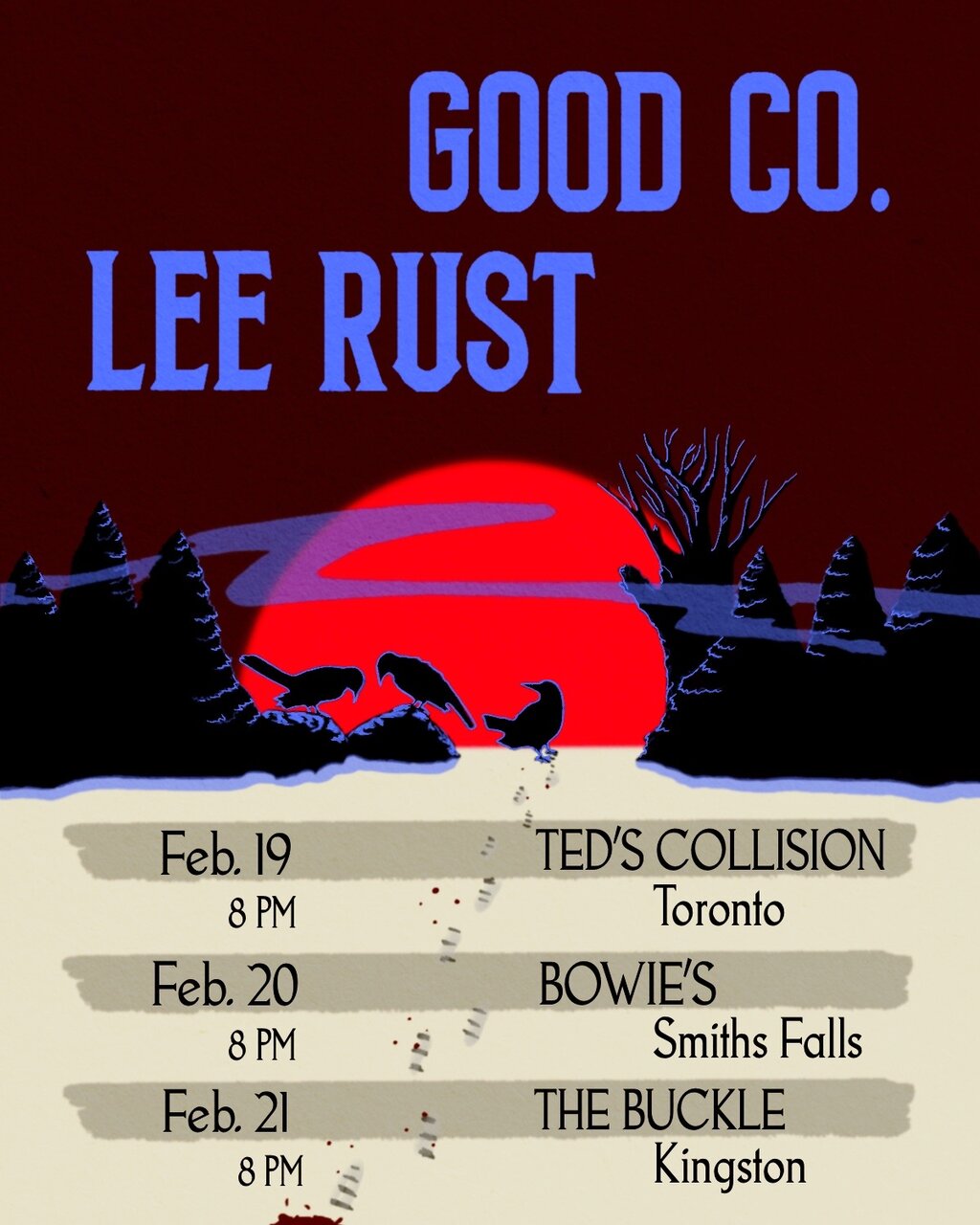 Good Co. is an Alt-Country band from Kingston, Ontario. What began as a solo songwriting project by Cody Allen James has evolved into a bonafide country rock outfit founded on a simple principle: write good songs and play them well. While they, of course, draw from the masters of the craft: Bob Dylan, John Prine, Gram Parsons, and The Rolling Stones, Good Co. has also been unavoidably influenced by more contemporary artists such as Neutral Milk Hotel, Deer Tick, and Demon’s Claws to name a few.