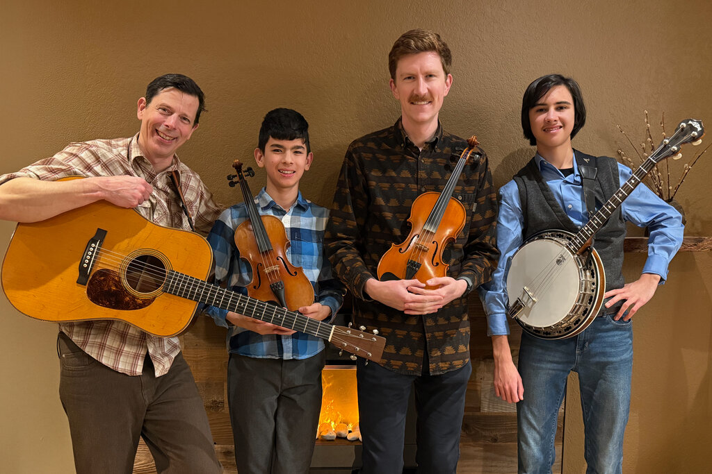 Bagatelle blends the rhythmic pulse of traditional Québécois music with the infectious energy of bluegrass. The band delivers a high-energy performance filled with tight harmonies and irresistible toe-tapping tunes. Whether it's a foot-stomping reel, a heartfelt ballad, or a lively call-and-response song "en français", Bagatelle brings a fresh yet deeply rooted sound that captivates audiences. While you may all of a sudden feel as though you've been teleported to Quebec, all the members are from right here in Victoria: Paul Moquin on acoustic guitar, Taiki Moquin and Ben Barrett-Forrest on violin, and current Canadian Grand Master Fiddle champion, Max Francis on banjo, mandolin, and (of course!) fiddle.